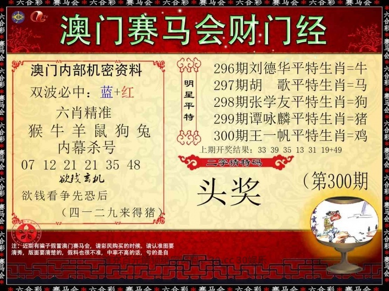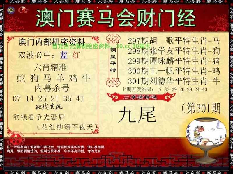 300期:💎两波中特蓝╣开:虎40准